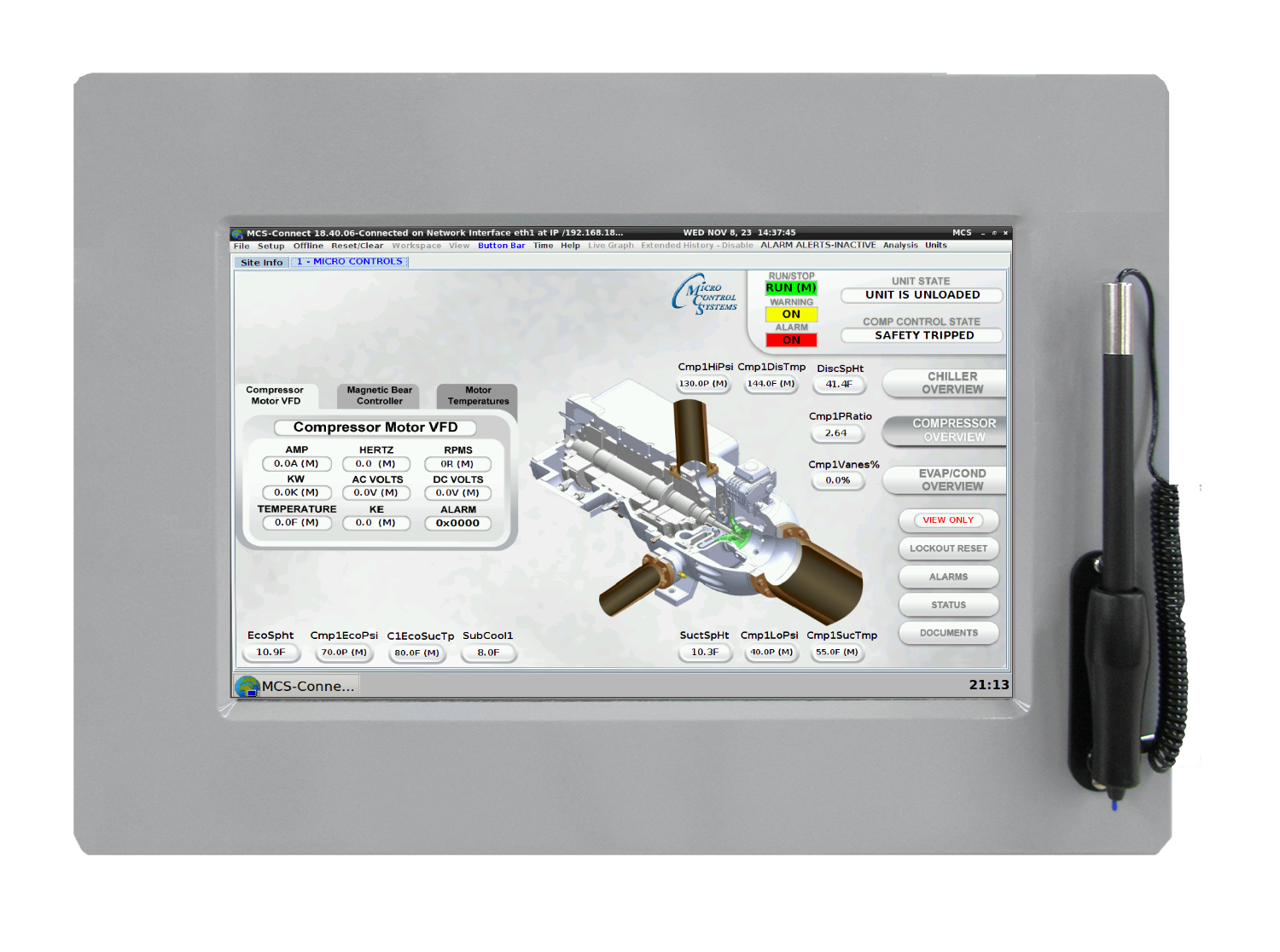 MCS-Connect, MCS-TOUCHSCREENS display real time data in a graphical and