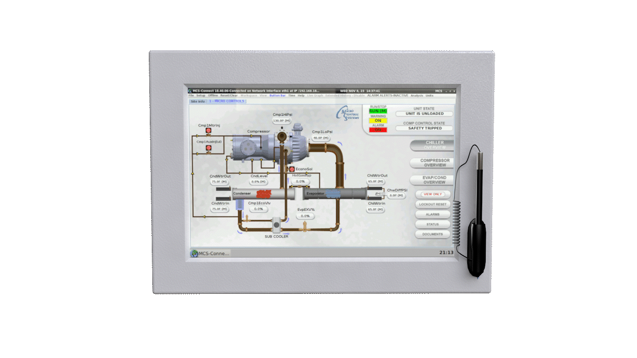 MCS-Connect, MCS-TOUCHSCREENS display real time data in a graphical and